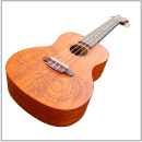 このウクレレのデザインには伝統的なハワイのボディー装飾を取り入れています。パターンとレイアウトはかなり幾何学的で、石、波、魚、鮫、亀、雨、太陽、鳥等自然の島の世界を象徴した様々な形やシンボルです。