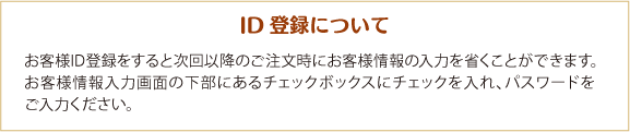 初めてご注文される方、又は前回ご注文時にID登録をされてない方は、お客様情報のご入力が必要です。必要事項をご入力ください。